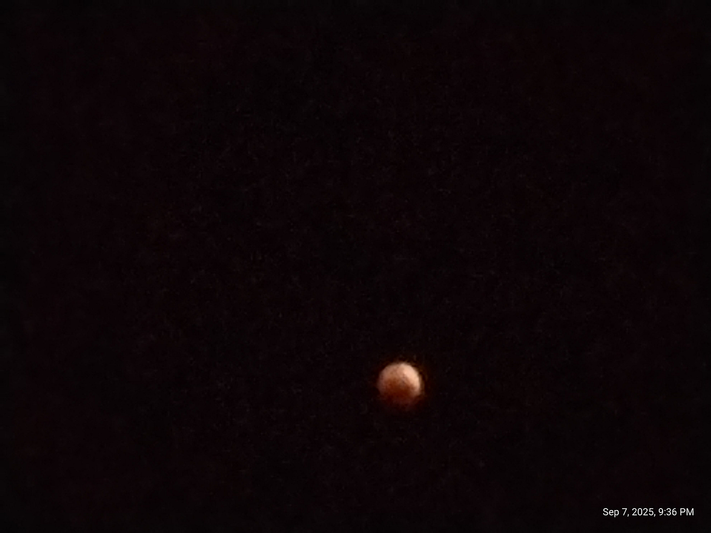 “Oh come on!” I answer. “Just come out with me now and have a look from across the street. My dessert can wait! Life is too short!” He relents and comes with me. He is awestruck. The restaurant manager, seated at a table, reads his expression and comes out as well. In an instant all the customers have followed us and we are all in the street looking at the moon. A man on a scooter stops as well.